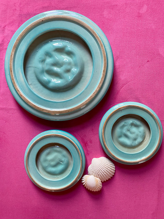 Ensemble turquoise de dessous de plat et dessous de bouteilles Art Déco