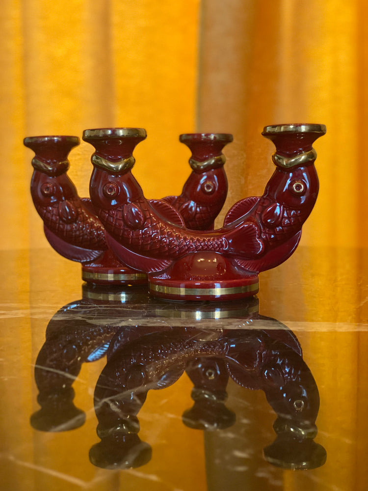 Paire de bougeoirs de couleur rouge bordeaux Art Déco