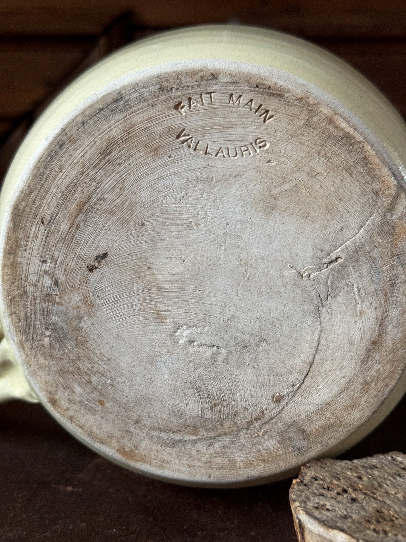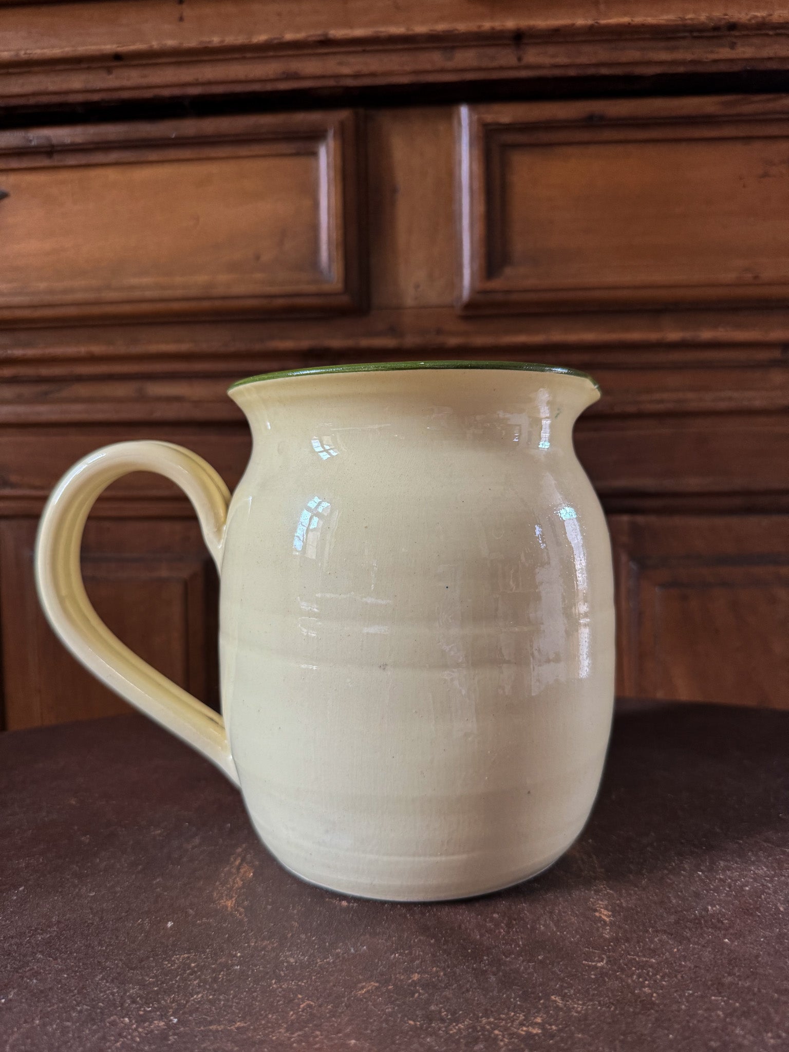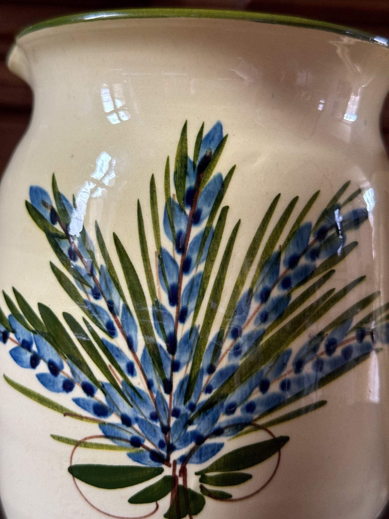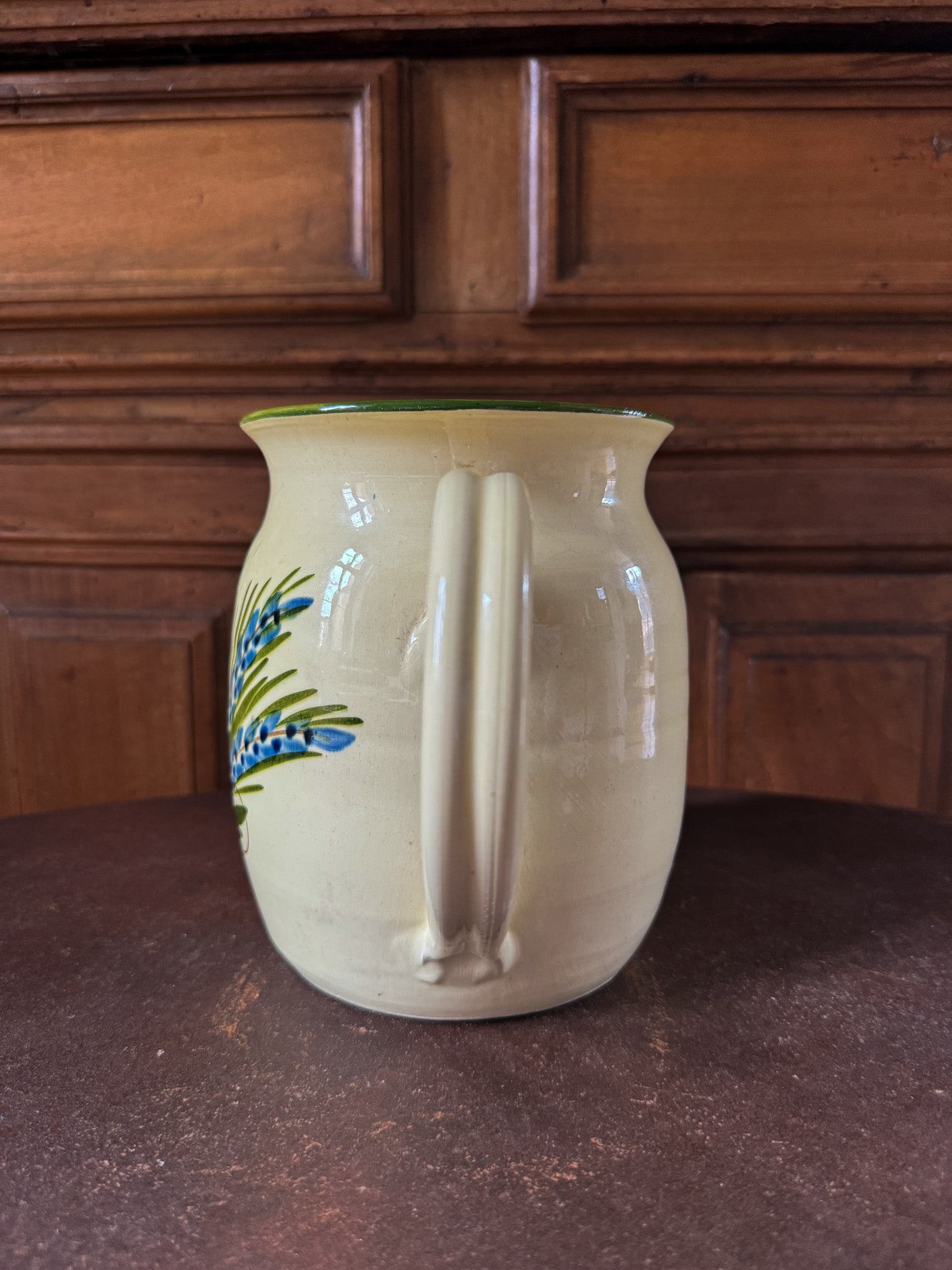 Beau pichet en céramique à décor peint main de brins de lavande.